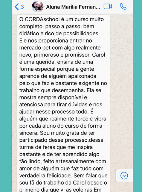 é um espaço dedicado a ensinar. Aqui vou dividir com vocês absolutamente tudo que aprendi no meu percurso. Vocês terão a oportunidade que eu não tive, de aprender de forma organizada, simples e lógica todas as técnicas de Macramê para você confeccionar coleiras lindas e exclusivas utilizando PARACORD.